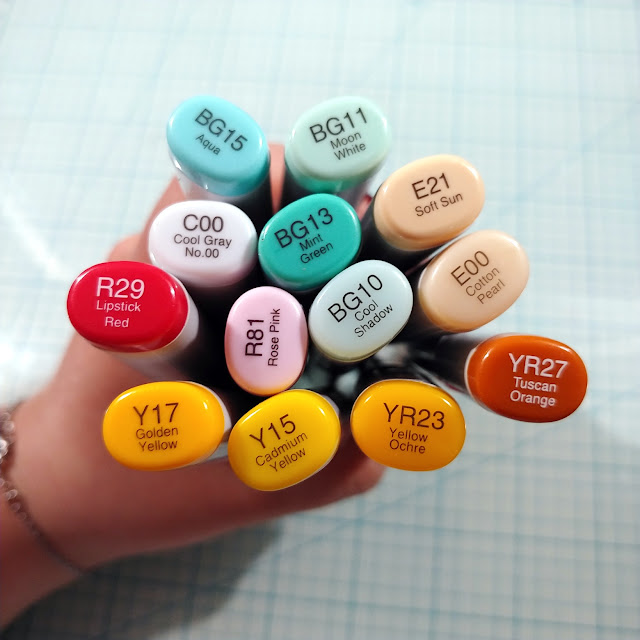 Superhero Scrubs stamp set from Erin Lee Creative. I've been using it CONSTANTLY! And I love that it has both a male and female character! I've been using the male frequently, so I decided to switch things up and use the girl for this glam card. I stamped her and colored with Copics. I think I left almost all of the coloring in the video so you could see how I quickly colored her, but if you'd rather a photo of the markers I used is above. I don't do much fancy blending. Just two markers for each color is usually my go-to!